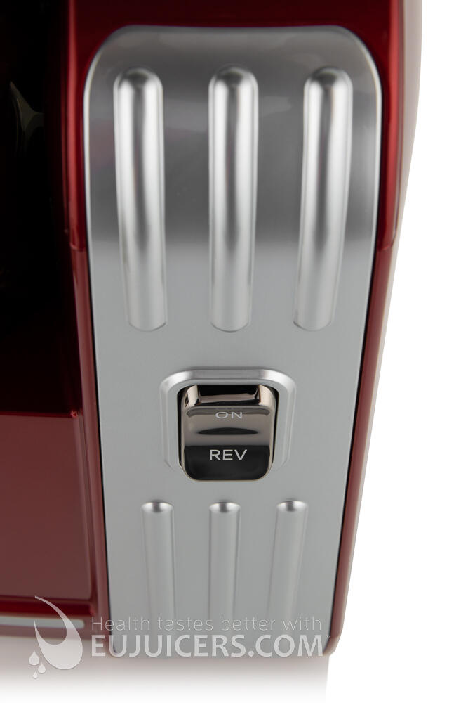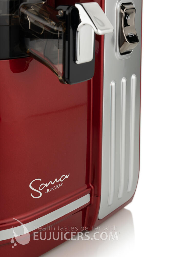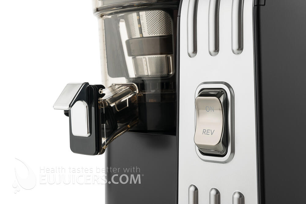 The changes compared to the 808 are incremental but useful. We were a bit puzzled at first by the pulp control lever. Rather than being an analog pressure regulator like on the Sana 606 horizontal juicer, the 828's pulp control lever is designed to release pressure to make it easier to juice soft or fibrous fruit. In practice, we found it useful toward the end of juicing to set it to the "half-open" position, as this pushed out more pulp and made it easier to clean.