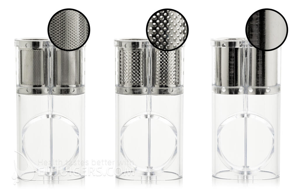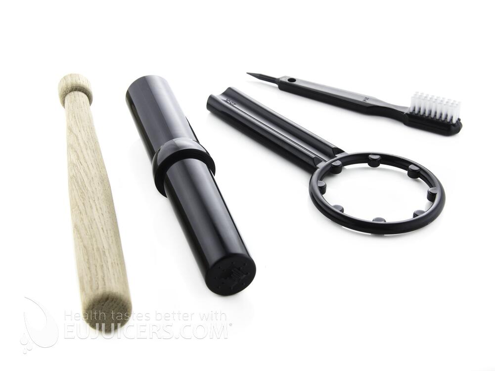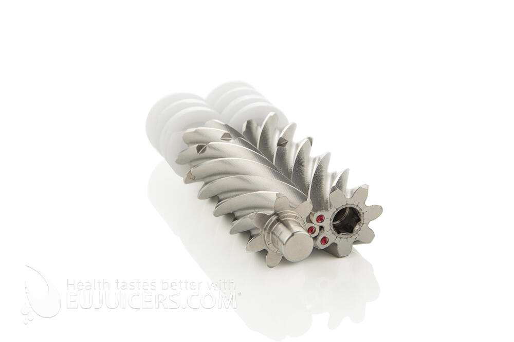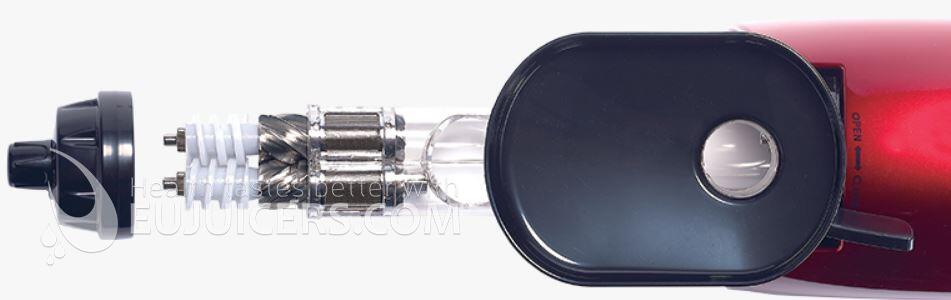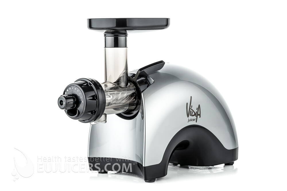 Twin gear juicers are the most advanced type of juicer. While they offer the highest yield, they also take more time as some ingredients, especially carrots, need to be cut into smaller pieces. The Vidia twin gear juicer is no exception, as it takes some time to process harder ingredients but gives a great yield of very high-quality juice. We liked the fact that the Vidia incudes three juicing screens. The blank screen is unusual for a twin gear juicer, and does a good job with banana/fruit sorbets. Wde also tried it with cashews and made a very smooth cashew butter. Another pleasant surprise was the inclusion of a wooden pusher in addition to the standard plastic one. Finally, the Vidia is solidly built in South Korea, unlike some flimsy competitors from China.